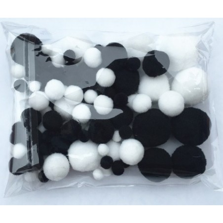 Stock 20 grammi pon pon mix varie misure da 8mm a 30mm bianco nero