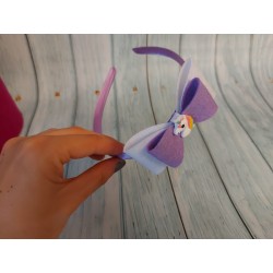 Cerchietto realizzato a mano, con fiocco Lilla e bianco e decoro Unicorno in resina.