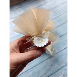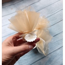 Vassoio con topper personalizzato + 20 sacchettini in tulle colore personalizzabile con tag personalizzato in base all'evento.