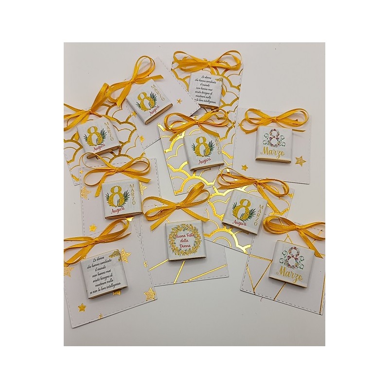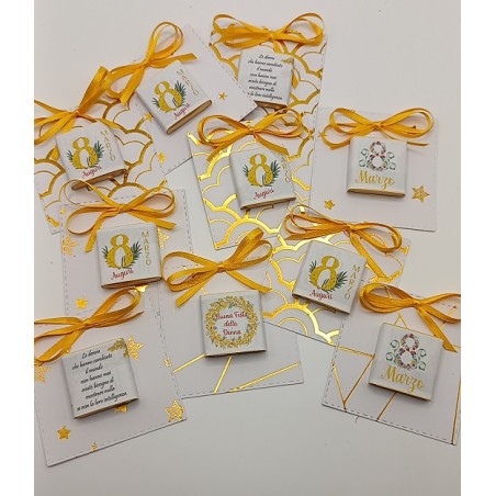Cioccolatino con frase Festa della donna con cartoncino e fiocchetto