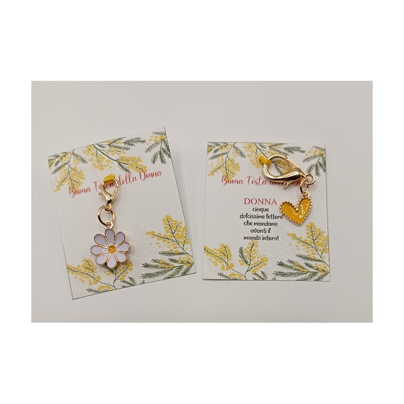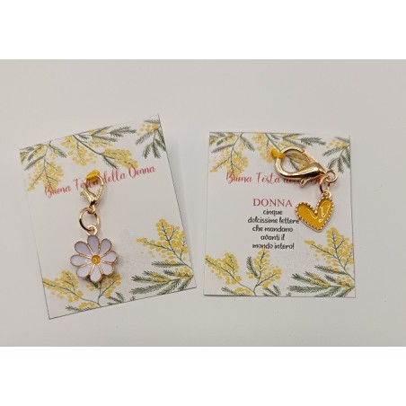 Idea regalo Festa della Donna 8 Marzo Ciondolo cuore o margherita con cartoncino