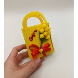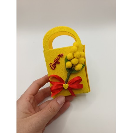 Idea regalo festa della donna mini borsetta Artigianale con Mimosa – Gadget Festa della Donna