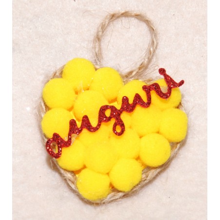 piccolo cuore d'appendere per la festa della donna con effetto mimosa
