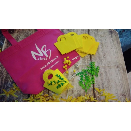 il prezzo comprende fustellati per borsetta + 1 fustellato foglie + 3 ponpon gialli + 1 fustellato scritta auguri (dovete incollare voi tutto. altrimenti all'interno del sito potete trovare l'articolo già assemblato da noi)