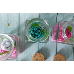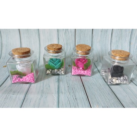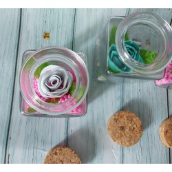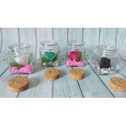 Rosa in fommy (che dura per sempre) in vasetto vetro 6 cm con tappo in sughero