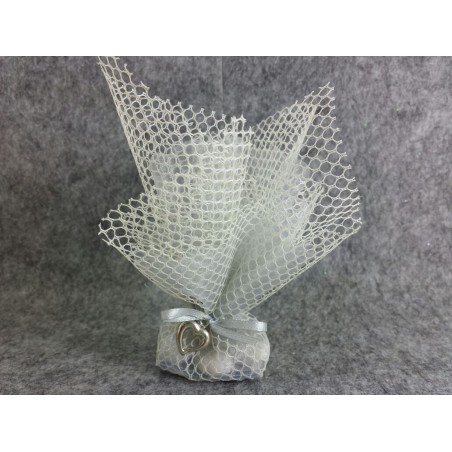 il prezzo comprende: sacchettino fatto con tulle (il colore si puo' scegliere in base ai nostri colori di tulle disponibili) , ciondolo, 5 confetti, bigliettino stampato (tutto confezionato)