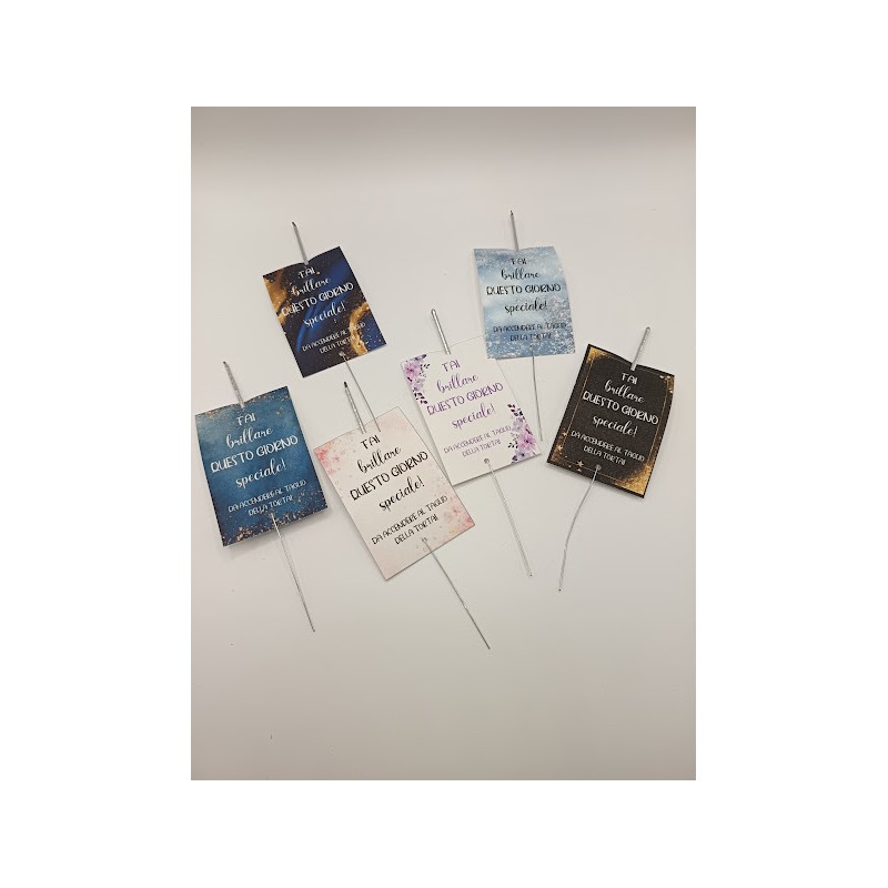 Rendi unico il momento del taglio torta con queste scintille decorative complete di elegante cartoncino personalizzabile.